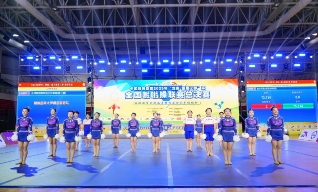 7月24日,由国家体育总局体操管理中心主办的“2025年全国啦啦操联赛总决赛”青年组项目在江西赣州举行,我校啦啦操队积极响应健康中国的青春号召,历时半年艰苦训练,从来自全国26个省区6500多人的大赛中脱颖而出,斩获一金两银一铜的好成绩。