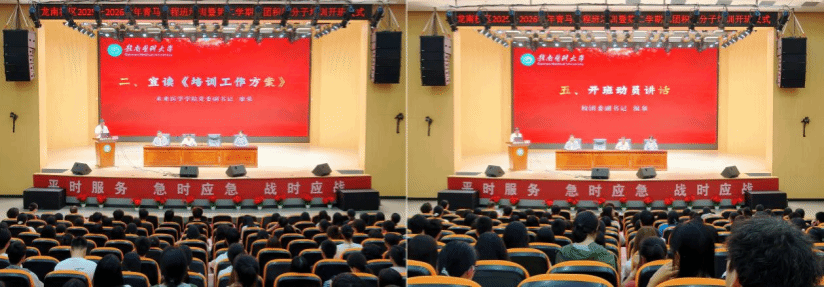 铸魂强能跟党走 红医领航启新程。4月12日,龙南校区2025—2026学年青马工程培训班暨入团积极分子培训班开班仪式在第一学术报告厅圆满举行。本次培训深入学习贯彻党的二十届四中全会精神,传承弘扬学校“红医魂”精神内核,全面落实党建带团建工作要求,切实强化青年思想政治引领。校团委副书记温泉、未来医学学院党委副书记廖荣、校区全体辅导员、560余名参训学员参加此次活动。