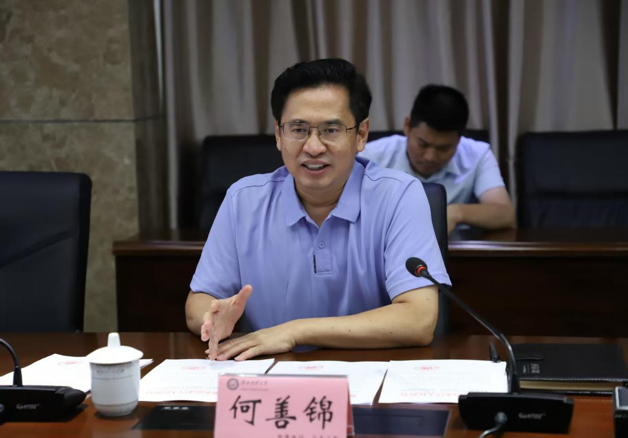 7月21日下午,市委常委、南康区委书记何善锦到我校交流座谈,南康区人大常委会主任李干东,赣州国际陆港党工委书记、管委会主任罗永锋,南康区副区长江晋斌一同到访。