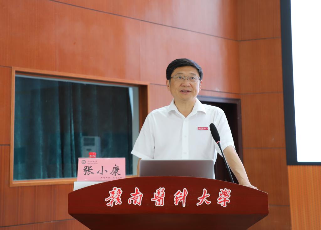 张小康从“学校概况、建设成效、未来展望”等三个方面,作题为《赓续红色血脉、培育时代新人,打造革命老区医学教育创新高地》的专题报告,介绍了学校总体概况,总结了学校近年来人才培养成效,并对学校未来事业发展进行了展望。他强调,学校将以本次评估为起点,坚持以评促建、以评促改、以评促管、以评促强,进一步解放思想、踔厉奋发,深入推进“五大战略”,着力实施“八大行动”,着力把学校建设成为特色鲜明、区域一流、国内知名的高水平医科大学,为推进教育强国和健康中国建设做出新的更大贡献。